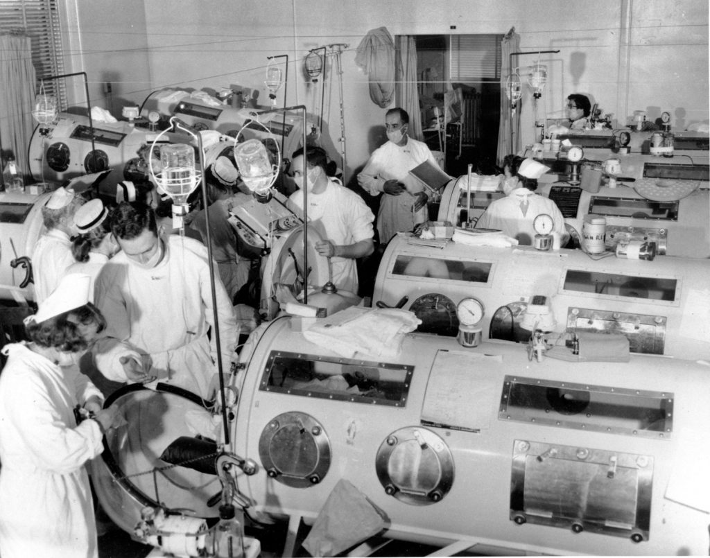 In the period immediately before the polio vaccine was released, the CDC had waged a media campaign to make the public believe polio was worse than what it was by persistent news coverage of the disease including film footage of paralytic polio victims in leg braces, or immobilized and strapped to huge inclined boards, or housed in foreboding iron lungs. The public pictured the thousands of kids reported with polio each year as suffering terribly when in truth the pictures involved only a fraction of a percent of the diagnosed cases. And people were led to believe that the iron lung was a permanent fixture, but in a majority of cases it was used for only one or two weeks.